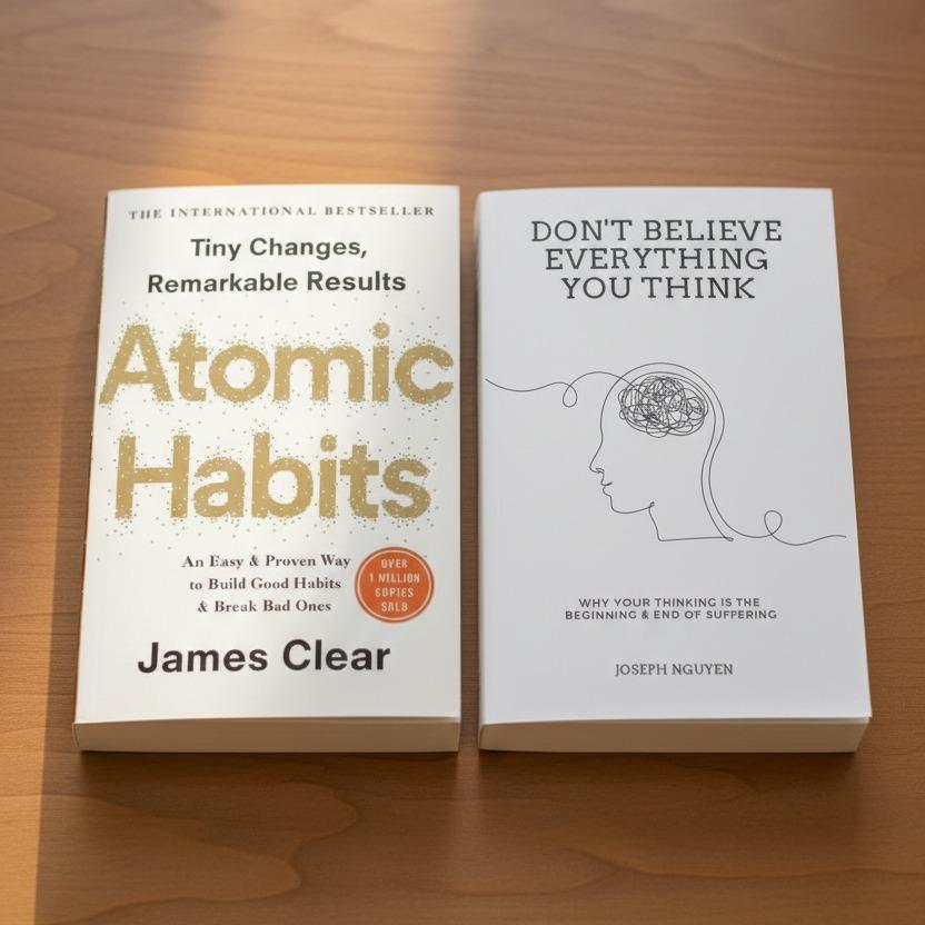 This bundle brings together two global bestsellers that help you master both your habits and your mindset. Atomic Habits by James Clear shows how small changes can create extraordinary results, while Don’t Believe Everything You Think by Joseph Nguyen helps you break free from anxiety, self-doubt, and overthinking to find lasting peace. Together, they offer practical science and timeless wisdom for anyone ready to create meaningful change from the inside out.